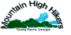 ( 4 ) Wagon Train Trail from Young Harris College to Brasstown Bald parking lot and return for a 13+ mile hike. Trail follows the abandoned bed of an old road through the Brasstown Wilderness.